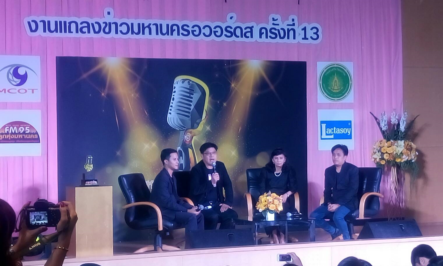 นายวิสุทธิ์ คมวัชรพงศ์ ผู้ช่วยกรรมการผู้อำนวยการใหญ่ สำนักวิทยุ บริ ษัท อสมท จำกัด มหาชน นางพิมพ์รวี วัฒนวรางกูร อธิบดีกรมส่งเสริมวัฒนธรรม และนายวาสุ เลิศจรรยา ผู้อำนวยการฝ่ายคลื่นวิทยุ FM 95 ร่วมกันแถลงข่าวเตรียมจัดงานประกาศผลและมอบรางวัลให้กับศิลปินลูกทุ่ง ศิลปินเพลงเพื่อชีวิต และศิลปินเพลงช้างเผือก ที่ได้รับความนิยมประจำปี 2559 พร้อมประกาศรายชื่อศิลปินที่เข้ารอบชิงรางวัลมหานครอวอร์ดสครั้งที่ 13 บทเพลงของพ่อ จำนวน 12 รางวัล ซึ่งบรรยากาศภาย ในงานเต็มไปด้วยความคึกคัก มีแฟนรายการวิทยุ แฟนเพลง และศิลปินลูกทุ่งเดินทางมาร่วมงานเนืองแน่น อาทิ ไผ่ พงศธร เสือ เทวฤทธิ์