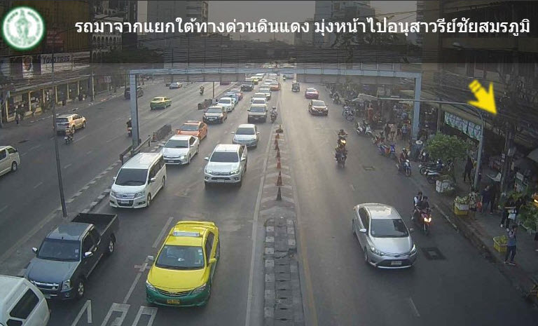 สภาพการจราจร ถนนดินแดง จากแยกใต้ทางด่วนดินแดง มุ่งหน้าไปอนุสาวรีย์ชัยสมรภูมิ รถมาก