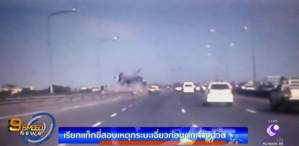 ความคืบหน้ารถกระบะ รีโว่ สีน้ำเงิน เฉี่ยวรถแท็กซี่ ก่อนพุ่งตกจากทางด่วนกาญจนาภิเษก เขตอำเภอพระประแดง จังหวัดสมุทรปราการ โดยคนในรถกระบะรอดชีวิตราวปาฏิหาริย์ 4 คน ล่าสุดตำรวจ สภ.สำโรงใต้เชิญนายชัยยะ ประสานสี คนขับรถแท็กซี่มาสอบปากคำ พร้อมตรวจวัดปริมาณแอลกฮอล์ และอยู่ระหว่าง ใช้กองพิสูจน์หลักฐานตรวจสภาพรถกระบะว่าใช้ความเร็วเกินกว่าที่กฎหมายกำหนดหรือไม่ เนื่องจากภาพในกล้องวงจรปิดหลายมุม พบว่ารถกระบะวิ่งมาด้วยความเร็วสูง