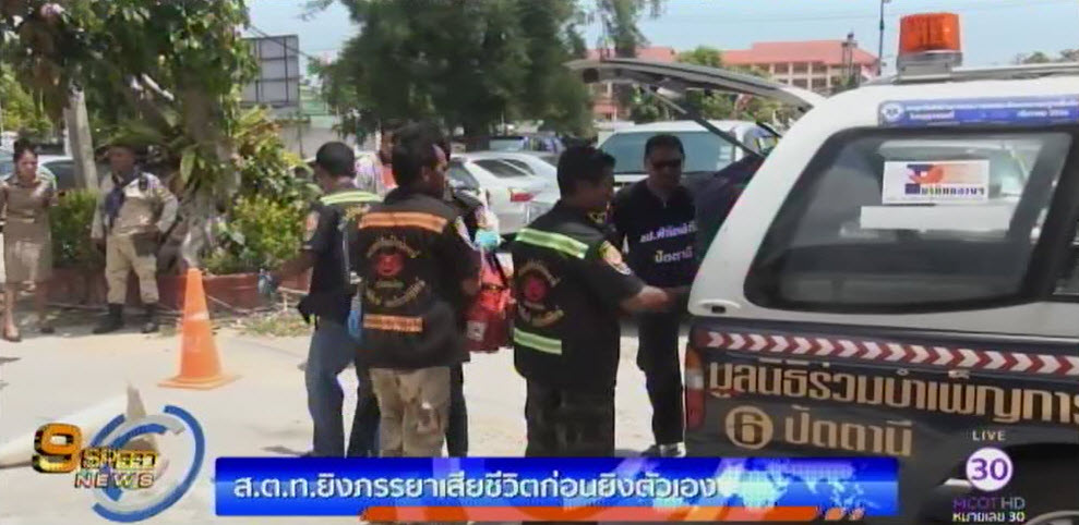 ปัตตานี 6 ก.พ.-ตำรวจยศ ส.ต.ท. สภ.เมืองปัตตานี ยิงภรรยาดับก่อนยิงตัวเองสาหัส หน้าที่ว่าการอำเภอ หลังไม่สามารถตกลงกันได้เรื่องสิทธิเลี้ยงดูลูกสาว