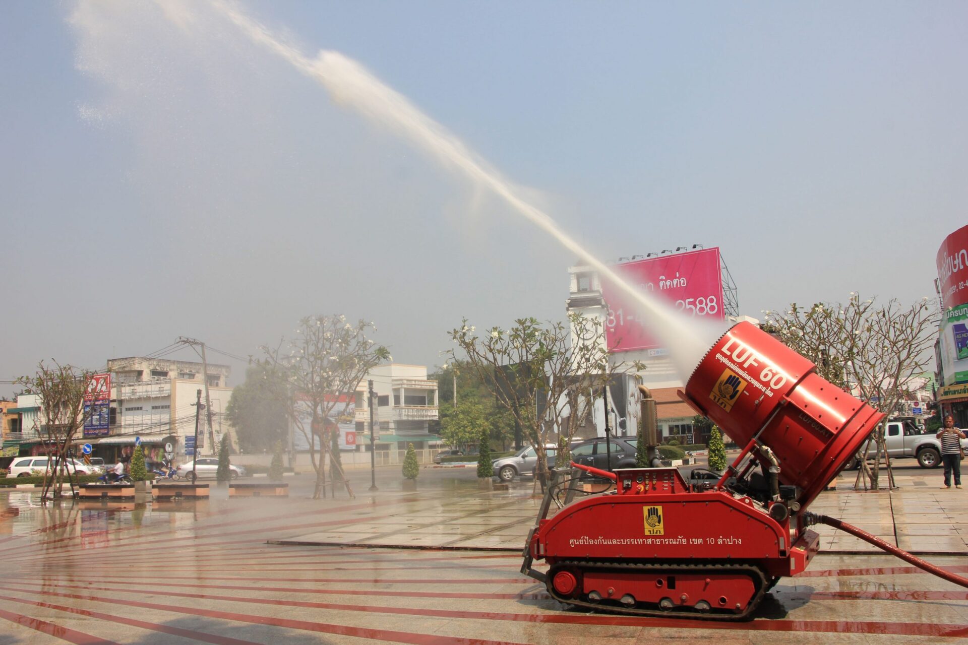 ลำปาง 6 มี.ค.- ศูนย์ ปภ.เขต 10 ช่วยบรรเทาปัญหาหมอกควันไฟป่าปกคลุมเมืองลำปาง เร่งฉีดพ่นละอองน้ำเพิ่มความชื้นในอากาศ หลังค่าฝุ่นเล็กพุ่งสูงเกินมาตรฐาน