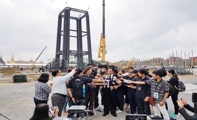 นายอนันต์ ชูโชติ อธิบดีกรมศิลปากร กระทรวงวัฒนธรรม (วธ.) ลงพื้นที่ติดตามความคืบหน้า การจัดสร้างพระเมรุมาศและสิ่งปลูกสร้างประกอบพระเมรุมาศและการบูรณะปฏิสังขรณ์ราชรถและพระยานมาศ ในงานพระราชพิธีถวายพระเพลิงพระบรมศพพระบาทสมเด็จพระปรมินทรมหาภูมิพลอดุลยเดช