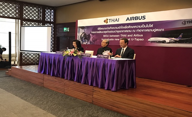 การบินไทย 8 มี.ค. – การบินไทยลงนามบันทึกความเข้าใจศึกษาพัฒนาศูนย์ซ่อมบำรุงอากาศยานที่ท่าอากาศยานอู่ตะเภากับแอร์บัส รองนายกรัฐมนตรีเศรษฐกิจขีดเส้นศึกษาเสร็จปีนี้ ก่อนดันเข้าคณะกรรมการพีพีพีร่วมทุนปีหน้า