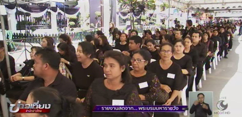 พระบรมมหาราชวัง 18 พ.ย. – ตลอดช่วงเช้าวันนี้ ยังคงมีประชาชนจากทั่วประเทศหลั่งไหลเดินทางมากราบถวายบังคมพระบรมศพ พระบาทสมเด็จพระปรมินทรมหาภูมิพลอดุลยเดช ที่พระบรมมหาราชวัง อย่างเนืองแน่น แม้สภาพอากาศร้อนอบอ้าว ส่วนเรื่องปัญหาการจัดระบบบัตรคิวระบบใหม่ จนทำให้เกิดการเข้าใจผิด ขณะนี้เจ้าหน้าที่กำลังนำเข้าหารือในที่ประชุม กอร.รส. เพื่อแก้ปัญหาอย่างเร่งด่วน. – สำนักข่าวไทย