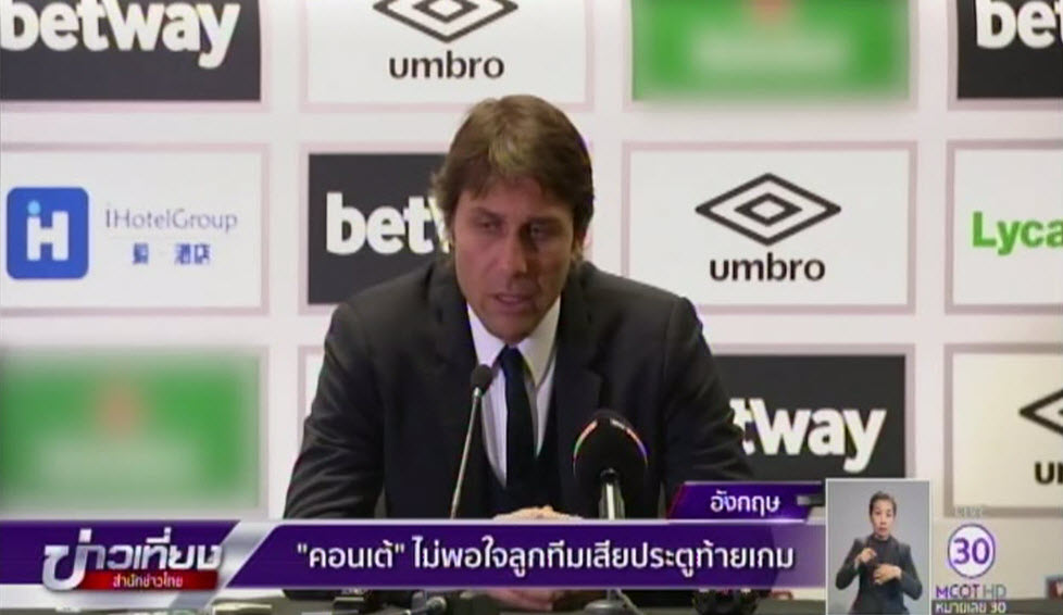 อังกฤษ 7 มี.ค.60- อันโตนิโอ คอนเต้ กุนซือเชลซี ไม่พอใจลูกทีม ที่เสียประตูช่วงท้ายเกม แม้จะบุกเฉือนเอาชนะ เวสต์แฮม ยูไนเต็ด 2-1 ในศึกพรีเมียร์ ลีก อังกฤษ