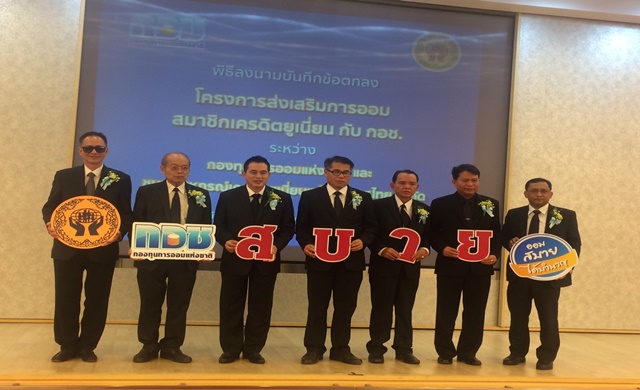 นายสมชัย สัจจพงษ์ ปลัดกระทรวงการคลัง เป็นประธานลงนามเอ็มโอยูโครงการส่งเสริมการออมสมาชิกเครดิตยูเนี่ยน โดยกองทุนการออมแห่งชาติ (กอช.) ร่วมกับชุมนุมสหกรณ์เครดิตยูเนี่ยนแห่งประเทศไทย จำกัด (ช.ส.ค.) เพื่อรองรับสังคมวัยชรา ตั้งเป้าระดมสมาชิกให้ได้ 1 ล้านคนภายในปี 2560 เดินหน้าให้กองทุนหมู่บ้านทำหน้าที่รับสมัครสมาชิก นอกจาก 3 แบงก์รัฐ ได้แก่ ธนาคารเพื่อการเกษตรและสหกรณ์การเกษตร (ธ.ก.ส.) ธนาคารออมสิน และธนาคารกรุงไทย เพื่ออำนวยความสะดวกการสมัครสมาชิกให้กับชาวบ้าน รวมทั้งหารือสภาอุตสาหกรรมแห่งประเทศไทย (ส.อ.ท.) เพื่อให้โรงงานรับซื้อขยะรีไซเคิ้ล หลังจากนักเรียน นักศึกษา แยกขยะ เพื่อขายให้กับบริษัทเอกชนและนำรายได้ดังกล่าวเป็นเงินออมสะสมในสมาชิก กอช.
