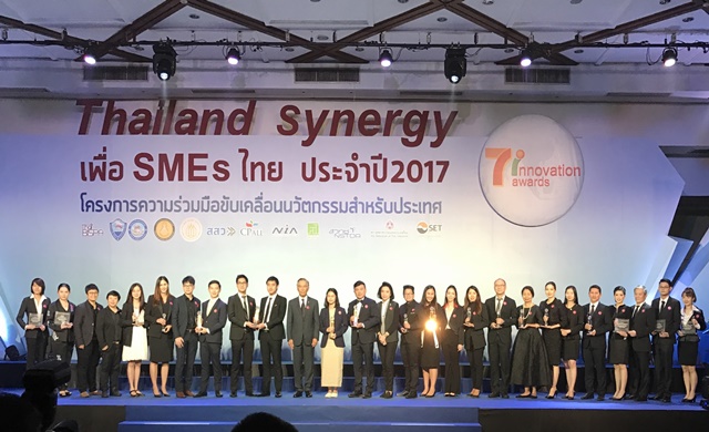 ศูนย์ฯ สิริกิติ์ 7 มี.ค. – ซีพี ออลล์ จับมือ 10 องค์กร มอบรางวัล “เซเว่น อินโนเวชั่น อวอร์ดส์ 2017” ในงาน “Thailand Synergy เพื่อ SMEs ไทย” ประจำปี 2017 โดยมีนายสุเมธ ตันติเวชกุล กรรมการและเลขาธิการ มูลนิธิชัยพัฒนา เป็นประธานมอบรางวัลด้านสังคม และนายอิสระ ว่องกุศลกิจ หัวหน้าทีมภาคเอกชน คณะกรรมการสานพลังประชารัฐและประธานกรรมการหอการค้าไทยเป็นประธานมอบรางวัลด้านเศรษฐกิจ โดยปีนี้มีผลงานที่ส่งเข้าประกวดทั้งสิ้น 58 ผลงาน และมีผลงานโดดเด่นผ่านการตัดสินได้รับรางวัลทั้งสิ้น 28 ผลงาน แบ่งเป็นผลงานนวัตกรรมที่ก่อให้เกิดประโยชน์ด้านเศรษฐกิจ 18 ผลงาน และผลงานด้านนวัตกรรมที่ก่อให้เกิดประโยชน์ด้านสังคม 10 ผลงาน