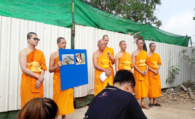 ขณะที่พระมหาทศพร กล่าวว่า สำหรับเมื่อวานนี้ที่ดีเอสไอพยายามขอเข้าตรวจสอบถังน้ำมัน แต่ถูกขัดขวาง น่าจะเป็นการสื่อสารที่ไม่ทั่วถึง ดีเอสไอเลยไม่ได้เข้า มีการคุยกันตลอดเวลาว่า เป็นถังน้ำมันเปล่าไม่ใช่น้ำมัน ซึ่งชาวบ้านเห็นเจ้าหน้าที่นำรถพยายามชนรั่ววัด 2-3 ครั้ง ก็เลยทำแนวป้องกัน เลยขุดร่องน้ำไว้ เพื่อความปลอดภัย ส่วนที่ขุดคูน้ำไปท่วมสวนชาวบ้าน นั้น วัดก็ท่วมเหมือนกัน ซึ่งที่มาแถลวข่าวตรงประตูบุญรักษาก็เพื่อให้เห็นภาพชัดเจน ซึ่งอาคารบุญรักษาสำคัญอย่างไรถึงมีการป้องกันแน่นหนา ชี้แจงว่าทุกที่ก็สำคัญหมดไม่ใช่เฉพาะอาคารบุญรักษาเท่านั้น