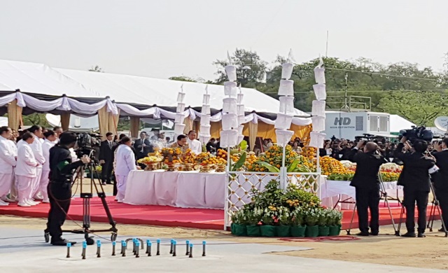 วันนี้ (27ก.พ.) เวลา 10.01 น.ที่บริเวณสนามหลวงด้านทิศใต้ พล.อ. ประยุทธ์ จันทร์โอชา นายกรัฐมนตรี เป็นประธานในพิธีบวงสรวงการก่อสร้างและยกเสาเอกพระเมรุมาศ งานพระราชพิธีถวายพระเพลิงพระบรมศพพระบาทสมเด็จพระปรมินทรมหาภูมิพลอดุลยเดช โดยมีคณะกรรมการจัดงานพระราชพิธีถวายพระเพลิงพระบรมศพพระบาทสมเด็จพระปรมินทรมหาภูมิพลอดุลยเดช พร้อมด้วย