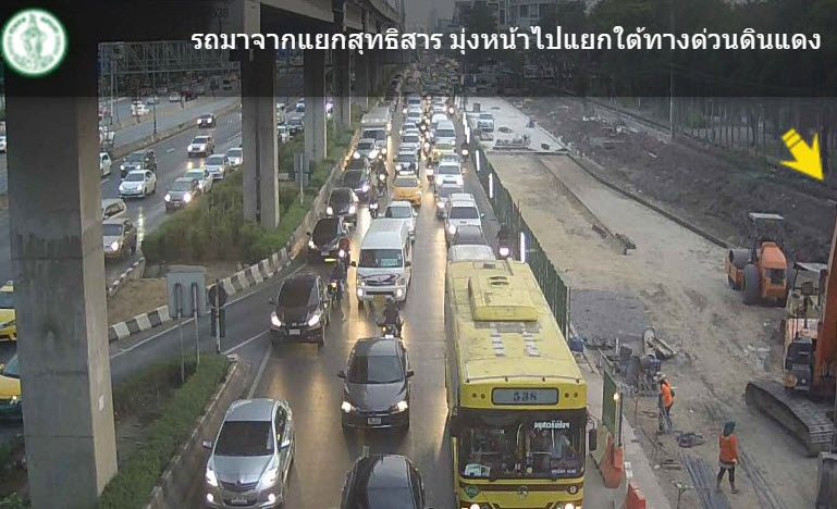 สภาพการจราจร ถนนวิภาวดีรังสิต จากแยกสุทธิสาร มุ่งหน้าแยกใต้ทางด่วนดินแดง รถหนาแน่น