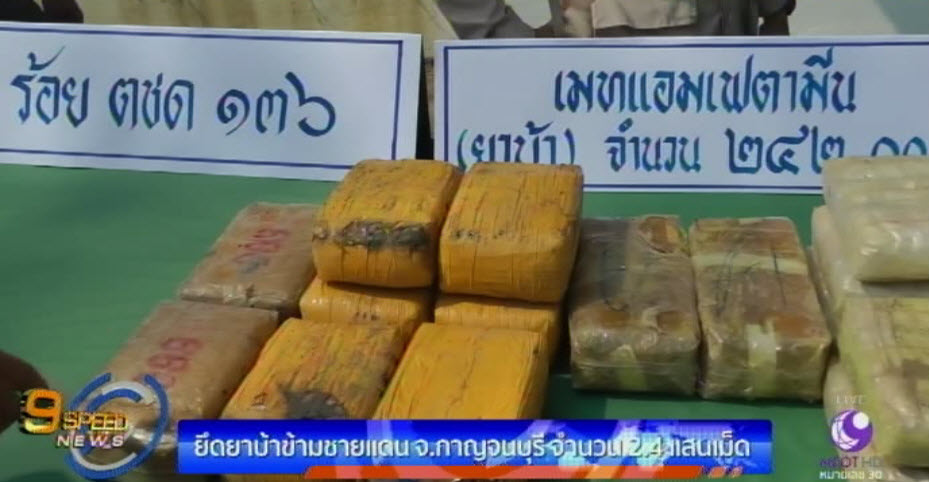 กาญจนบุรี 25 ก.พ. – เจ้าหน้าที่ตรวจยึดยาบ้า 242,000 เม็ด และของกลางอื่นอีกหลายรายการ จากขบวนการค้ายาเสพติด หลังสนธิกำลังตั้งจุดตรวจบริเวณบ้านห้วยโมง ตำบลบ้องตี้ อำเภอไทรโยค จังหวัดกาญจนบุรี ซึ่งเป็นตะเข็บชายแดน และพบรถต้องสงสัยขับผ่าน จึงเรียกตรวจค้นและตรวจปัสสาวะคนขับและผู้โดยสาร 3 คน แต่ระหว่างนั้นคนขับและผู้โดยสาร ซึ่งเป็นชาย 2 คน ได้วิ่งหลบหนีข้ามชายแดนไป ส่วนอีกคนเป็นหญิงวิ่งไม่ทัน จึงถูกควบคุมตัวเอาไว้ได้ จากการตรวจค้นพบยาบ้าทั้งหมดซุกซ่อนไว้ประตูหน้าและฝากระบะ ขณะนี้อยู่ระหว่างขยายผลหาผู้ร่วมขบวนการ โดยของกลางทั้งหมด หากเล็ดลอดเข้ากรุงเทพมหานครจะมีมูลค่า 60 ล้านบาท. -สำนักข่าวไทย