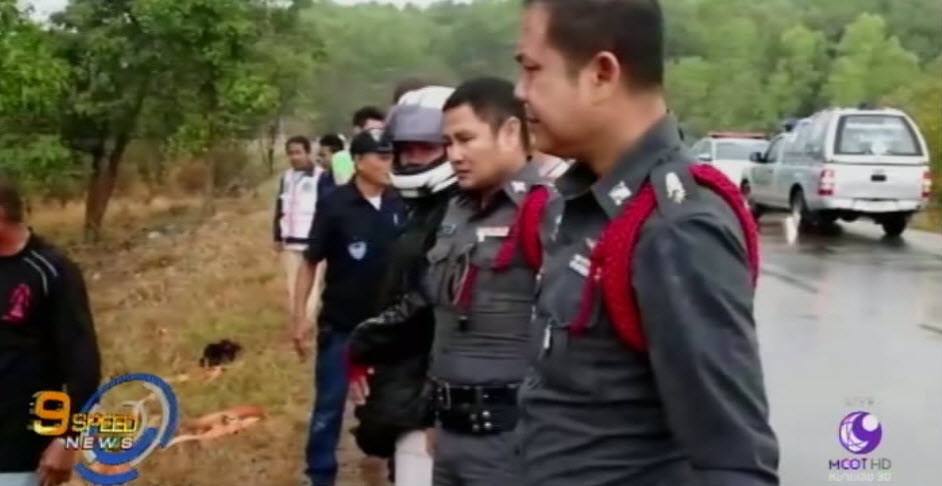 นครพนม 25 ก.พ. – เจ้าหน้าที่ช่วยกันลากรถกระบะ ทะเบียน กข 7855 สกลนคร ขึ้นจากห้วยบังกอ ตำบลหนองญาติ อำเภอเมือง นครพนม ซึ่งลึกประมาณ 3 -4 เมตร ก่อนใช้ค้อนทุบกระจกรถ เข้าตรวจสอบพบศพ ร.ต.ต.ทองมี ข่ายเพชร อายุ 54 ปี รองสารวัตรป้องกันและปราบปราม ตำรวจภูธรกุตาไก้ อำเภอปลาปาก จังหวัดนครพนม นางพิสมัย นักบุญ อายุ 48 ปี ภรรยา และนางสาวอรทัย อุทำกา อายุ 17 ปี ลูกสาว