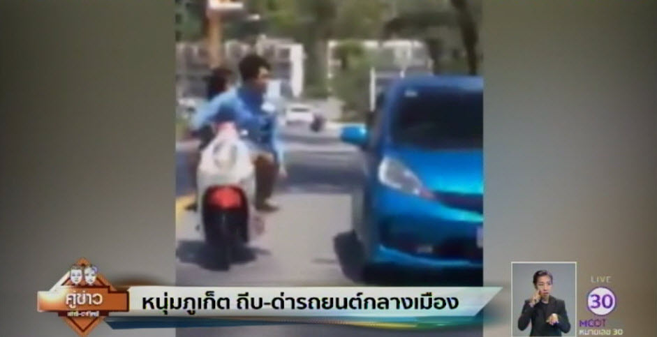 ส่วนใหญ่ต่อว่าทำเกินกว่าเหตุ เพราะทั้งตามด่าและถีบรถยนต์มาตลอดทางโชดดีที่คนอยู่บนรถยนต์คันดังกล่าวไม่ได้ตอบโต้ เพราะเนื่องจากมีเพื่อนชาวต่างประเทศนั่งมาด้วย และคนขับเป็นชาวไทย เบื้องต้นทราบว่าหนุ่มที่ตามถีบรถจักรยานยนต์คันดังกล่าวเป็นหนุ่มชาวบางเทา ต.เชิงทะเล อ.ถลาง จ.ภูเก็ต พยานแจ้งว่าน่าจะมีเรื่องมีการปาดหน้ากันบีบแตรใส่กันที่บริเวณหน้าร้านบริเวณ ต.เชิงทะเล และหนุ่มบางเทาไม่พอใจได้ขับรถจักรยานยนต์มตามและเรียกให้คนขับรถยนต์จอดและลงไม่เคลียร์กัน แต่รถยนต์ไม่จอดให้ขับรถจักรยายนยนต์ตามไปจนถึงหาดกมลา ต.กมลา อ.กะทู้ จ.ภูเก็ต ตลอดทางได้ชี้หน้าด่าและถีบรถยนต์ตลอดเวลา แต่รถยนต์นั้นพยายามขับหนีตลอด