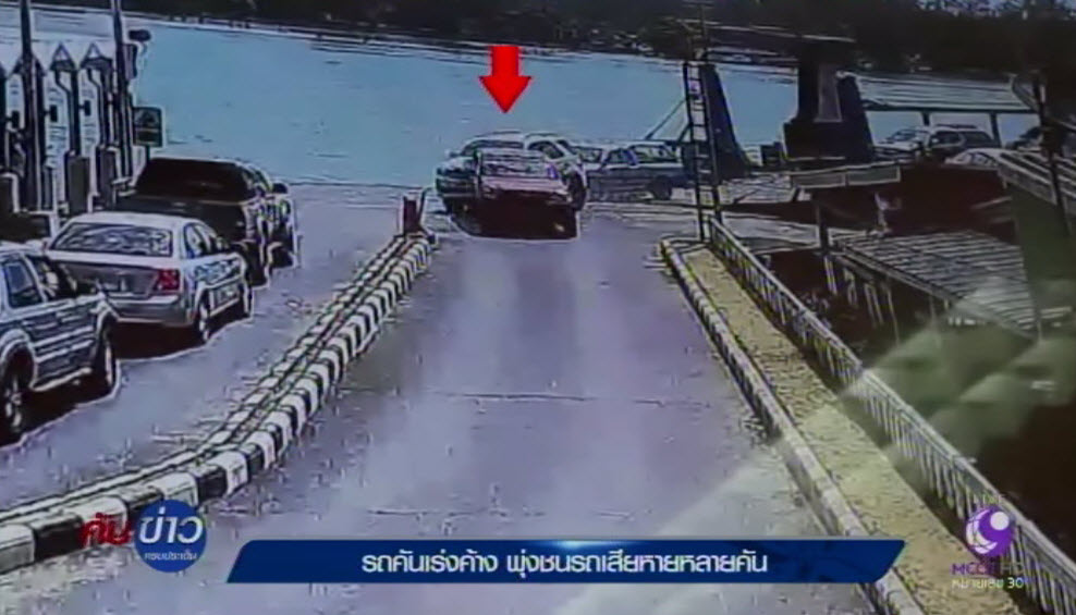 สงขลา 24 ก.พ.- ระทึกฟอจูนเนอร์คันเร่งค้าง พุ่งชนรถจอดรอขึ้นแพที่สงขลาเสียหายหลายคัน