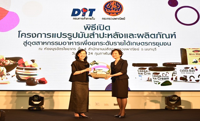 นนทบุรี 24 ก.พ. – กระทรวงพาณิชย์เปิดโครงการแปรรูปมันสำปะหลังและผลิตภัณฑ์สู่อุตสาหกรรมอาหาร เชื่อสร้างเกษตรกรให้เป็นผู้ประกอบการหันมาแปรรูปสินค้าสู่อุตสาหกรรมอาหาร เพิ่มสัดส่วนการบริโภคในประเทศมากขึ้น