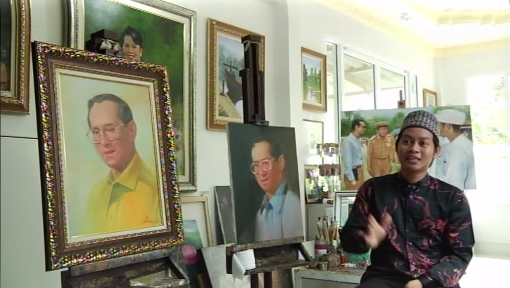 พระบรมสาทิสลักษณ์พระบาทสมเด็จพระปรมินทรมหาภูมิพลอดุลยเดชที่เห็นอยู่นี้ เป็นเพียงบางส่วนที่ศิลปินหนุ่มชายแดนใต้ตั้งใจวาดด้วยความสำนึกในพระมหากรุณาธิคุณ แม้พระองค์จะเสด็จสวรรคตแล้ว แต่เขายังคงตั้งใจวาดต่อไปเพื่อให้ชนรุ่นหลังได้ศึกษาพระราชกรณียกิจที่ทรงมีแก่พสกนิกรในจังหวัดชายแดนภาคใต้