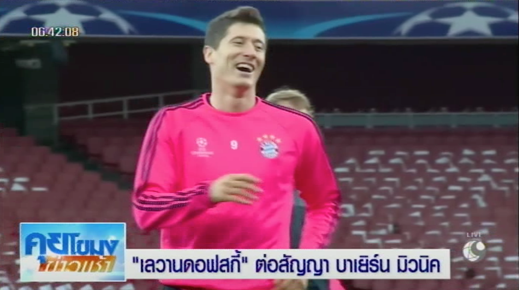 โรเบิร์ต เลวานดอฟสกี ศูนย์หน้าทีมชาติโปแลนด์ ต่อสัญญาฉบับใหม่กับทีม “เสือใต้” บาเยิร์น มิวนิค ต้นสังกัดแห่งศึกบุนเดสลีกา เยอรมนี ออกไปจนถึงปี 2021 เรียบร้อยแล้ว หลังสัญญาฉบับเดิมกำลังจะหมดลงในปี 2019 หรืออีก 3 ปีข้างหน้า โดยอดีตดาวยิงโบรุสเซีย ดอร์ทมุนด์ ยอมรับว่า รู้สึกดีใจที่จะได้ทำงานร่วมกับทีม “เสือใต้” ออกไปอีก หลังก่อนหน้านี้ทำไปแล้ว 58 ประตู จากการลงสนาม 77 เกม นับตั้งแต่ย้ายมาจากทีม “เสือเหลือง” โดย เลวานดอฟสกี วัย 28 ปี หวังพาบาเยิร์น มิวนิค คว้าแชมป์บุนเดสลีกา ให้ได้เป็นสมัยที่ 5 ติดต่อกัน ซึ่งจะเป็นแชมป์ลีกสูงสุดของเยอรมนี สมัยที่ 5 ของเจ้าตัวด้วยเช่นกัน