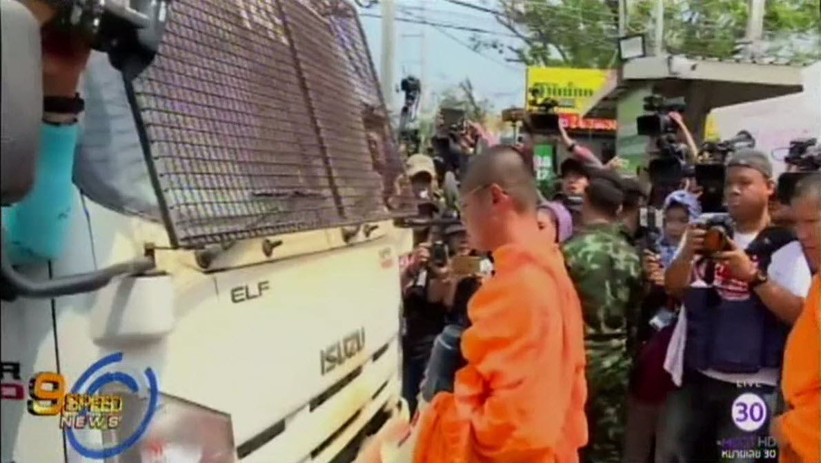 บรรยากาศบริเวณตลาดกลางคลองหลวง ฝั่งตรงข้ามทางเข้าวัดพระธรรมกาย ประตู 5 ตึงเครียดขึ้น หลังเจ้าหน้าที่นำรถควบคุมผู้ต้องหาติดเครื่องขยายเสียงมาจอดไว้ โดยเมื่อรถคันดังกล่าวมาจอด ทำให้พระสงฆ์และคณะศิษย์จำนวนหนึ่งออกมาขอให้นำรถออกไปจากพื้นที่ จนตำรวจต้องถอยร่นขับรถออกจากจุดเดิม มาจอดไว้ที่ริมถนนคลองหลวงแทน ส่วนพระสงฆ์และคณะลูกศิษย์ที่รวมตัวอยู่ภายในเต็นท์ได้สวดมนต์ พร้อมชูป้ายเรียกร้องให้ยกเลิกพื้นที่วัดพระธรรมกายเป็นพื้นที่ควบคุมตามมาตรา 44