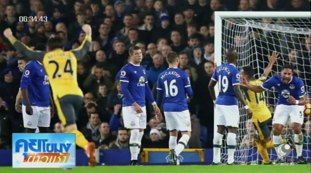 ฟุตบอลพรีเมียร์ลีก อังกฤษ เมื่อคืนที่ผ่านมามีเตะ 2 คู่ โดยไฮไลท์อยู่ที่ ท็อฟฟีสีน้ำเงิน เอฟเวอร์ตัน เปิดกูดิสัน ปาร์ค พบกับ อาร์เซนอล รองจ่าฝูง นาทีที่ 20 อเล็กซิส ซานเชส ยิงไปแฉลบขา แอชลีย์ วิลเลียมส์ เปลี่ยนทางผ่านมือ มาร์เตน สเตเคเลนเบิร์ก เข้าไปให้อาร์เซนอล ขึ้นนำ 1-0 แต่นาทีที่ 44 เซมุส โคลแมน มาโหม่งตีเสมอให้เอฟเวอร์ตัน 1-1 จากนั้นครึ่งหลังนาทีที่ 86 แฟนบอลเจ้าถิ่นได้เฮทั้งสนาม จากจังหวะที่ รอสส์ บาร์คลีย์ เปิดเตะมุมให้ แอชลีย์ วิลเลียมส์ โหม่งให้เอฟเวอร์ตัน พลิกขึ้นนำ 2-1 ก่อนที่ช่วงท้ายเกม ฟิล จากิลกา ของเอฟเวอร์ตัน ถูกใบเหลืองแดงไล่ออกจากสนาม จบเกม เอฟเวอร์ตัน เฉือนเอาชนะไปได้ 2-1 หยุดสถิติไม่แพ้ในลีกของอาร์เซนอลเอาไว้ที่ 14 นัดติดต่อกัน และทำให้อาร์เซนอล มี 34 คะแนน พลาดทำแต้มเทียบเท่าเชลซี จ่าฝูง ที่จะไปเยือน ซันเดอร์แลนด์ ในคืนนี้ ส่วนเอฟเวอร์ตัน ขยับขึ้นไปรั้งอันดับ 7 มี 23 คะแนน