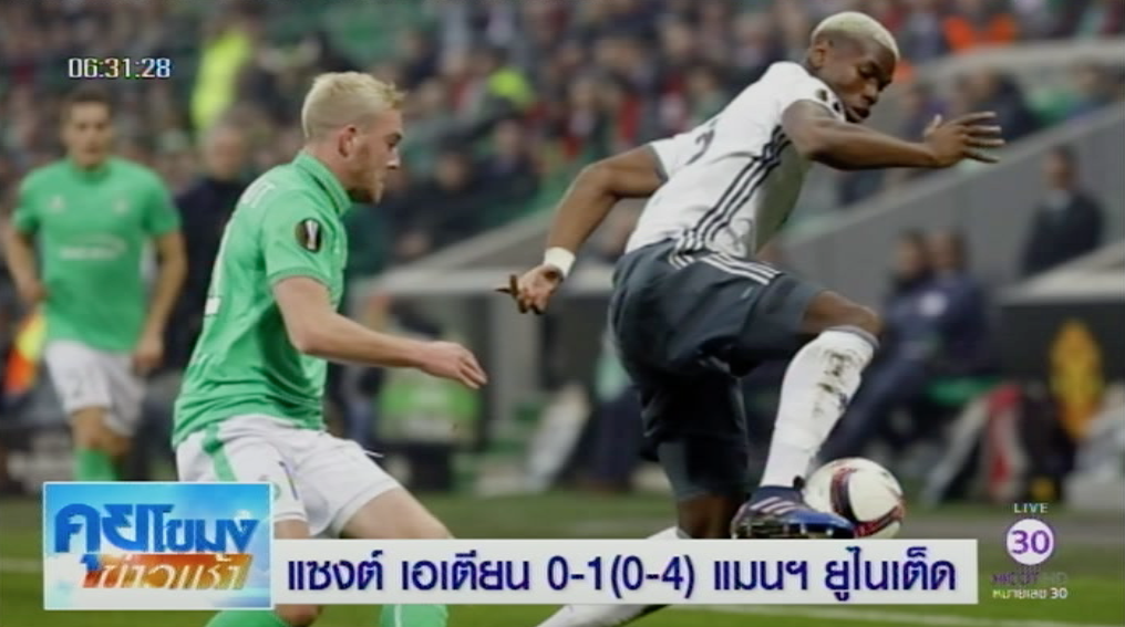 ผลฟุตบอลยูฟ่า ยูโรปา ลีก รอบ 32 ทีมสุดท้ายนัดที่ 2 เกมที่สนามสต๊าดเจฟฟรัว กีชาร์ แซงต์ เอเตียน จากลีกเอิง ฝรั่งเศส เปิดบ้านแพ้ แมนฯ ยูไนเต็ด ไป 0-1 โดยแมนฯ ยูไนเต็ด ได้ประตูชัยของ เฮนริค มคิตาร์ยาน นาทีที่ 16 โดยครึ่งหลัง เอริค ไบญี มาโดนไล่ออกจากการสะสมครบสองใบเหลือง และจะพลาดลงสนามในเกมยุโรปนัดต่อไป จบเกมแมนฯ ยูไนเต็ด ชนะ 1-0 รวมผล 2 นัดเข้ารอบด้วยประตูรวม 4-0 ผ่านเข้าสู่รอบ 16 ทีมสุดท้าย