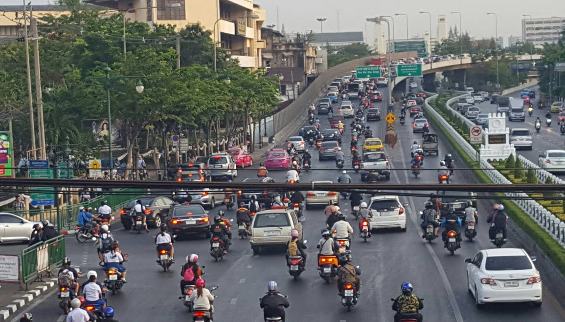 กทม. 23 ก.พ.-สวพ.FM91 รายงานจราจรเช้าวันเช้าวันพฤหัสบดี ถนนประชาธิปก แยกบ้านแขก ขึ้นสะพานพระปกเกล้า รถหนาแน่น
