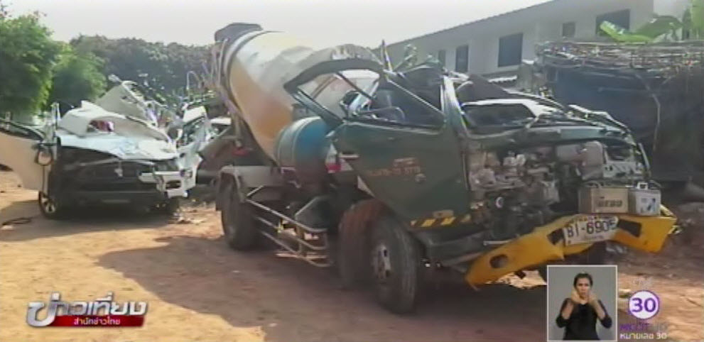 เชียงราย 16 ก.พ. – ความคืบหน้ารถบรรทุกปูนเสียหลักพุ่งชนรถตู้และรถเก๋งรวม 4 คัน ที่ จ.เชียงราย จนมีผู้เสียชีวิต 9 คน บาดเจ็บอีก 3 คน ขณะนี้เจ้าหน้าที่กองพิสูจน์หลักฐานเข้าเก็บหลักฐานในรถบรรทุกปูนและรถตู้ที่ สภ.บ้านดู่