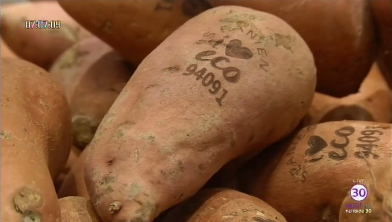 สวีเดน 16 ก.พ.-ซูเปอร์มาร์เก็ตที่ประเทศสวีเดนทดลองทำเครื่องหมายด้วยแสงเลเซอร์ลงบนเปลือกของผักผลไม้บางชนิด แทนที่จะใช้ฉลากพลาสติก เพื่อหวังจะช่วยลดผลกระทบต่อสิ่งแวดล้อม แม้จะเป็นเพียงส่วนเล็กๆ ก็ตาม