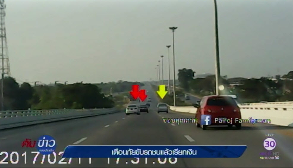 ผู้ใช้เฟซบุ๊ก Pairoj Familyman โพสต์คลิปจากกล้องหน้ารถเป็นเหตุการณ์รถเก๋ง 2 คัน ขับเบียดรถกระบะ พร้อมระบุว่า รถกระบะคือผู้เสียหาย เหตุการณ์นี้เกิดขึ้นช่วงเวลา 17.00 น. วันที่ 11 กุมภาพันธ์ ที่ถนนสาย 347 บางปะอิน-บางปะหัน ก่อนถึงศูนย์ศิลปาชีพ ซึ่งรถเก๋ง 2 คัน อ้างว่า รถตนเองมีประกันชั้น 1 แต่ขอค่าเอ็กเซฟ สำหรับรถประกันชั้น 1 จำนวน 8,000 บาท โดยอ้างว่าจะจ้างช่างทำสีทั้งคัน เรียกค่าเสียหายจากรถกระบะ 8,000 บาท