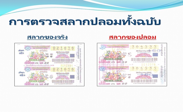 คลิก> เว็บสำนักงานสลากฯ ย้ำการดูสลากจริง-สลากปลอมทั้งฉบับ รู้เท่าทันมิจฉาชีพ