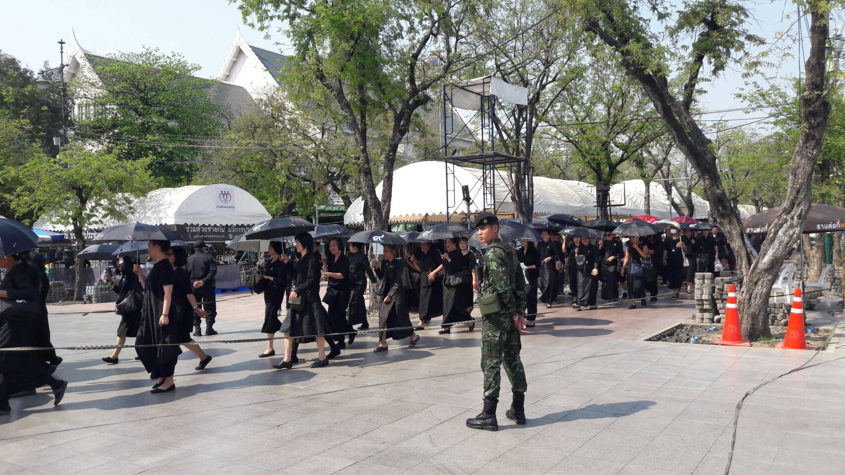 ตลอดช่วงบ่ายวันนี้(14 ก.พ.) มีประชาชนเดินทางมารอคิวเพื่อเข้ากราบถวายบังคมพระบรมศพพระบาทสมเด็จพระปรมิทรมหาภูมิพลอดุลยเดช ณ พระที่นั่งดุสิตมหาปราสาท ในพระบรมมหาราชวัง ซึ่งทางสำนักพระราชวังเปิดให้ประชาชนเข้ากราบถวายบังคมพระบรมศพฯเป็นวันที่ 104 แล้ว ประชาชนทั้งในกรุงเทพฯและต่างจังหวัด มารอกราบถวายบังคมพระบรมศพฯด้วยความสำนึกในพระมหากรุณาธิคุณ โดยใช้เวลารอในเต็นท์พักคอยไม่นานนัก