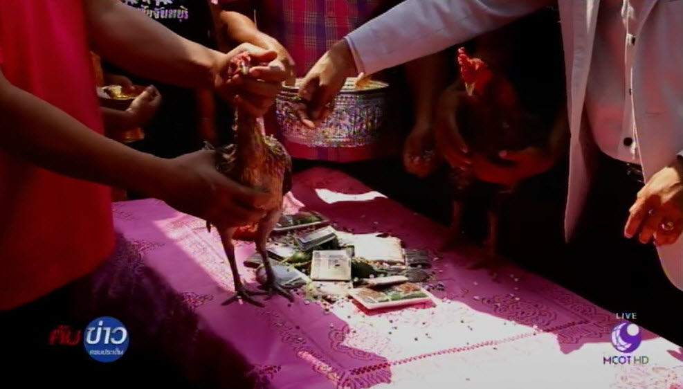 จันทบุรี 13 ก.พ.-สุดฮือฮา! งานวิวาห์ไก่ชนซุ้มดัง อ.สอยดาว จ.จันทบุรี จัดพิธีอย่างยิ่งใหญ่รับวันวาเลนไทน์ ระหว่าง “เจ้าเทาสามแสน” ไก่ชนค่าตัว 1 ล้านบาทของ “ซุ้มธงชัย จันทบุรี” กับ “แม่เจ้ายอดประดู่” จากซุ้มไก่ชน “พรย่าโม” จ.นครราชสีมา พร้อมเงินสด 3 แสนเป็นค่าสินสอด