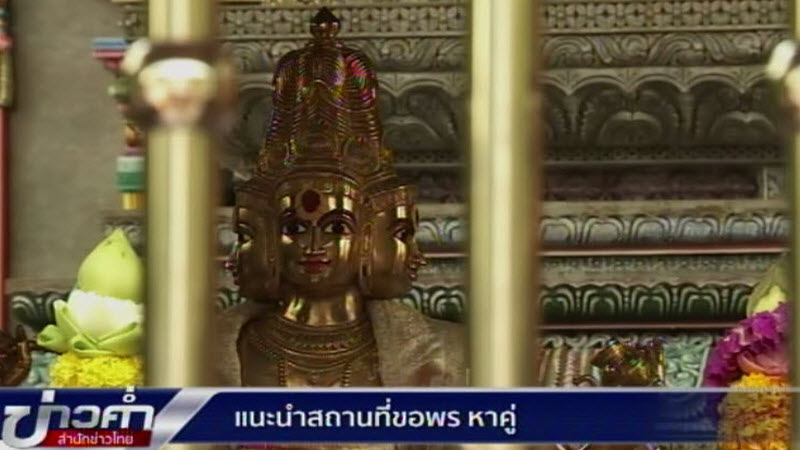 กทม. 13 ก.พ.-เข้าสู่ช่วงเทศกาลวาเลนไทน์ กลุ่มคนที่น่าเป็นห่วงคือกลุ่มคนโสด และหากใครที่อยากมีคู่ครอง วันนี้เรามีสถานที่แนะนำที่คนโสดส่วนใหญ่มักจะไปขอพรให้พบเนื้อคู่.-สำนักข่าวไทย