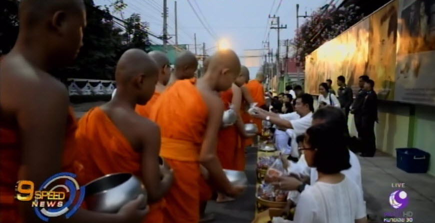 พิจิตร 12 ก.พ. – ผู้ว่าราชการจังหวัดพิจิตร และประชาชน นุ่งขาวห่มขาวร่วมทำบุญตักบาตรรับอรุณ เนื่องในสัปดาห์ส่งเสริมพระพุทธศาสนาวันมาฆบูชา และกิจกรรมรวมพลังแห่งความภักดี น้อมสำนึกในพระมหากรุณาธิคุณ พระบาทสมเด็จพระปรมินทรมหาภูมิพลอดุลยเดช เพื่อถวายเป็นพระราชกุศล โดยมีพระสงฆ์ – สามเณร จากวัดท่าหลวง จำนวน 99 รูป ออกรับบิณฑบาต จากพุทธศาสนิกชนตลอดถนนสายวัฒนธรรม.- สำนักข่าวไทย