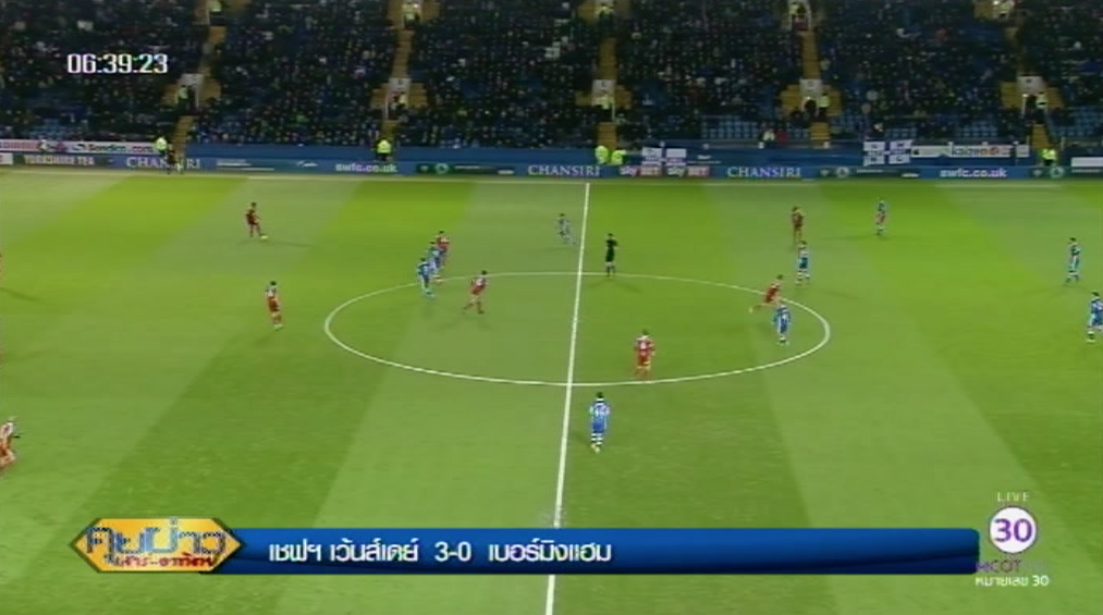 ฟุตบอลอีเอฟแอล แชมเปียนชิพ อังกฤษ ที่สนามฮิลล์สโบโร “นกเค้าแมว” เชฟฟิลด์ เวนส์เดย์ อันดับที่ 6 เปิดบ้านพบกับ “ลูกโลก” เบอร์มิงแฮม ซิตี้ อันดับที่ 12 เริ่มเกมมา 9 นาที รอสส์ วัลเลซ เปิดฟรีคิกจากกราบขวามาให้ จอร์แดน โรดส์ โหม่งเข้าไป โดยเป็นประตูแรกของเจ้าตัว นับตั้งแต่ย้ายมาจากมิดเดิลสโบรช์ด้วยสัญญายืมตัว หลังจากนั้น เบอร์มิงแฮม ทีมเยือน รูปเกมดีขึ้น แต่ยังเจาะเจ้าบ้านไม่เข้า จบครึ่งแรก เวนส์เดย์ นำ 1-0