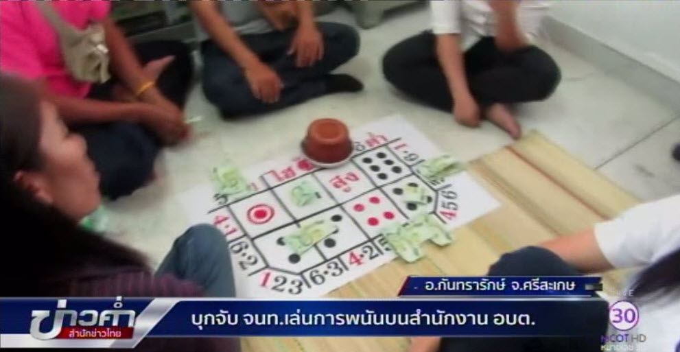 ศรีสะเกษ 10 ก.พ. – ทหาร ฝ่ายปกครอง ตำรวจ บุกรวบเจ้าหน้าที่ตั้งวงเล่นโฮโลในห้องทำงาน สำนักงาน อบต.ยาง อ.กันทรารมย์ จ.ศรีสะเกษ พบมีผู้อำนวยการคลังร่วมเล่นพนันด้วย