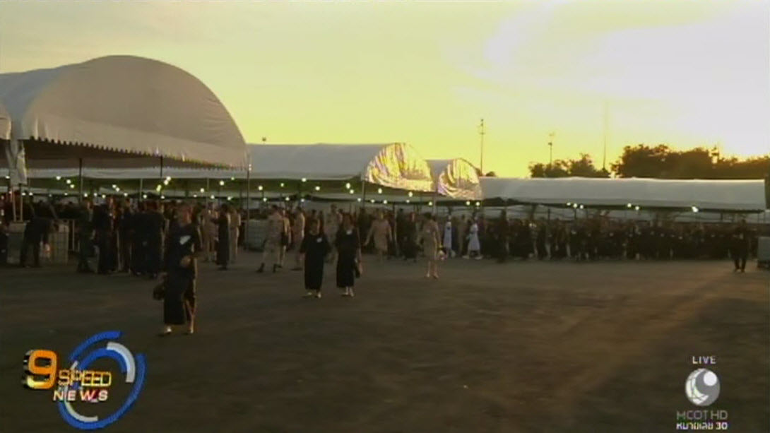 กรุงเทพฯ 17 พ.ย.-บรรยากาศที่ท้องสนามหลวงเช้านี้ ยังคงเนืองแน่นไปด้วยประชาชนที่เดินทางมาเฝ้ารอเข้ากราบถวายบังคมพระบรมศพ พระบาทสมเด็จพระปรมินทรมหาภูมิพลอดุลยเดช ท้ายแถวยังอยู่บริเวณเต็นท์กลางสนามหลวง ช่วงเช้าแต่ละเต็นท์ที่นั่งรอ จะมีจิตอาสา นำกาแฟ นม ขนมปัง มาตั้งโต๊ะให้บริการแก่ประชาชนด้วย