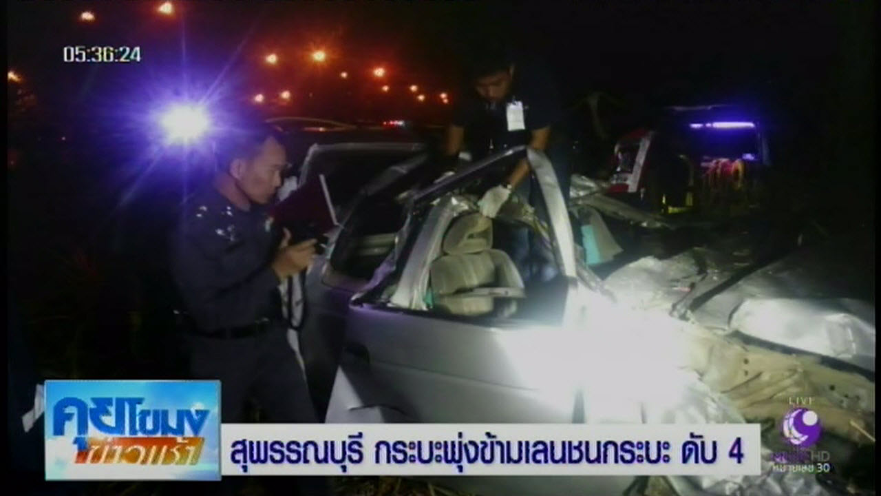 สุพรรณบุรี 10 ก.พ.-พ่อค้าขับรถกระบะพุ่งข้ามเลน ชนรถกระบะของดาบตำรวจ บริเวณถนนสาย 324 อู่ทอง-กาญจนบุรี ทำให้มีผู้เสียชีวิต 4 ราย