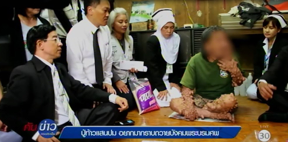 ด้านนายแพทย์บรรยง เหล่าเจริญสุข ผู้อำนวยการโรงพยาบาลเบตง กล่าวว่า โรคท้าวแสนปม ไม่ใช่โรคติดต่อ ไม่ติดต่อทางการสัมผัส หรือการหายใจ เนื่องจากไม่ได้เกิดจากเชื้อโรค แต่เป็นโรคผิวหนังที่ถ่ายทอดทางพันธุกรรม เกิดจากเซลล์เยื่อหุ้มประสาทเจริญผิดปกติกลายเป็นเนื้องอกขึ้นตามผิวหนัง โดยก้อนเนื้อจะมีโอกาสเป็นมะเร็งได้ร้อยละ 2-5 ผู้ที่เป็นโรคนี้จะมีเนื้องอกตะปุ่มตะป่ำทั่วตัว มีขนาดเล็กบ้างใหญ่บ้าง กระจายไปเต็มตัว บางรายอาจมีไม่กี่ตุ่ม แต่ส่วนใหญ่ร่างกายแข็งแรงเหมือนคนปกติทั่วไป ในการรักษา เป็นการรักษาตามอาการ โดยวิธีตัดก้อนเนื้อที่ก่อให้เกิดความรำคาญโดยเฉพาะก้อนใหญ่ที่ก่อให้เกิดความไม่สะดวกในการดำรงชีวิตประจำวัน เช่น ก้อนที่มีน้ำหนักมาก ถ่วง หรือปิดรูหู ปิดปาก หรือปิดตาทำให้ลืมตาไม่ขึ้น ไม่สะดวกในการรับประทานอาหาร อย่างไรก็ตามหลังผ่าตัดก้อนเนื้อออกแล้ว ก้อนเนื้อก็จะงอกขึ้นมาใหม่ได้ ดังนั้นเพื่อนบ้าน บุคคลใกล้ชิดกับผู้ป่วย ไม่ควรแสดงความรังเกียจผู้ป่วย เนื่องจากไม่ได้เป็นโรคติดต่อ ยังสามารถให้การช่วยเหลือดูแลซึ่งกันและกันได้เหมือนคนปกติทั่วไป.-สำนักข่าวไทย