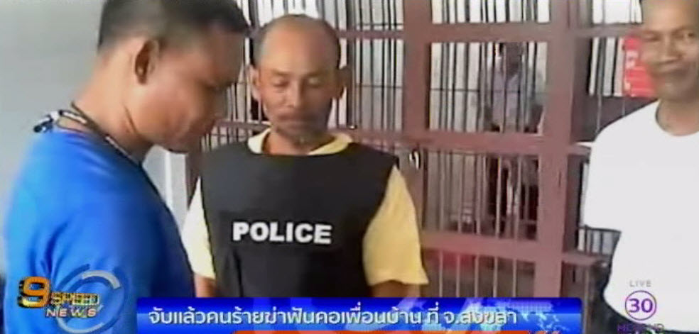 สงขลา 7 ก.พ. – ตำรวจสทิงพระ จ.สงขลา จับกุมนายพงษ์ศักดิ์ สุขสว่าง ที่ก่อคดีฆ่าฟันคอนายสถิต นพภาพันธ์ เสียชีวิตเมื่อวานนี้ ขณะขับรถจักรยานยนต์ออกไปยกไซดักปลา ตำรวจติดตามจับกุมได้หลังจากหลบหนีไปกบดานอยู่ จ.พัทลุง พร้อมของกลางมีดปาดและเสื้อผ้าที่ใส่ในวันเกิดเหตุ รวมทั้งรถจักรยานยนต์พ่วงข้างอีก 1 คัน สารภาพว่าผู้ตายเป็นเพื่อนบ้านคู่อริที่มีเรื่องบาดหมางกันมานาน วันเกิดเหตุโกรธที่ผู้ตายเดินไปเหยียบต้นข้าวในนาเสียหาย. – สำนักข่าวไทย