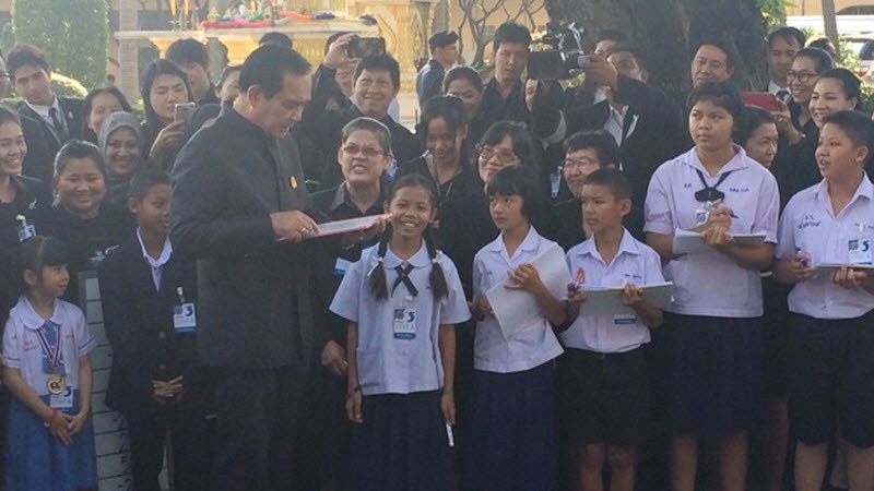 ทำเนียบรัฐบาล 7 ก.พ. – นายกฯ ลงลายมือชื่อในบัตรอวยพรมาฆบูชา 2560 พบเด็กนักเรียน ชื่นชมความสามารถของเด็กที่มีความเป็นเลิศในด้านต่างๆ แนะให้รู้จักใช้ทักษะ รู้จักการคิด วิเคราะห์ แยกแยะ ย้ำรัฐบาลให้ความจริงจังกับการปฏิรูปการศึกษา