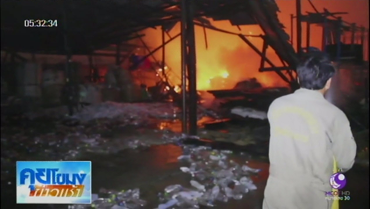 ที่เกิดเหตุพบเพลิงกำลังลุกไหม้ร้านรับซื้อของเก่าชื่อทวีทรัพย์รีไซเคิลรับซื้อของเก่า บนเนื้อที่ประมาณ 1 ไร่ ซึ่งต้นเพลิงเกิดขึ้นมาจากด้านหลังของร้าน และไฟลุกไหม้อย่างรุนแรง และมีเสียงระเบิดของถังออกซิเจนและคอมเพรสเซอร์แอร์เป็นระยะ เจ้าหน้าที่ดับเพลิงช่วยกันใช้น้ำฉีดสกัดเพื่อไม่ให้ไฟลุกลามไปยังพื้นที่ใกล้เคียง โดยมีประชาชนได้ช่วยกันขนสิ่งของและถังแก๊สออกจากร้านเพื่อป้องกันการระเบิด ใช้เวลากว่า 1 ชั่วโมง จึงสามารถควบคุมเพลิงไว้ในวงจำกัด ตรวจสอบเบื้องต้นไม่มีผู้ได้รับบาดเจ็บ ประเมินความเสียหายเบื้องต้นกว่า 1 ล้านบาท