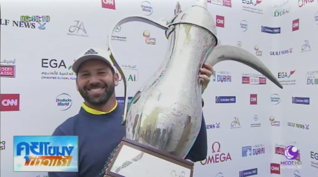 กอล์ฟยูโรเปียน ทัวร์ รายการ “โอเมกา ดูไบ เดสเสิร์ท คลาสสิก” ที่สนามเอมิเรตส์ กอล์ฟ คลับ ในเมืองดูไบ ประเทศสหรัฐอาหรับเอมิเรตส์ ชิงเงินรางวัลรวมประมาณ 79.5 ล้านบาท วันสุดท้าย เซอร์จิโอ การ์เซีย โปรจอมเก๋าจากสเปน ผู้นำหลังจบวันที่ 3 ตีประคองเก็บเพิ่มอีก 3 อันเดอร์พาร์ สกอร์รวม 19 อันเดอร์พาร์ เอาชนะ เฮนริค สเตนสัน จากสวีเดน 3 สโตรก คว้าแชมป์ยูโรเปียนทัวร์ รายการแรกนับตั้งแต่คว้าแชมป์กาตาร์ มาสเตอร์ เมื่อปี 2014 รับเงินรางวัลกลับบ้าน 410,224 ยูโร หรือประมาณ 15 ล้านบาท และจะทำให้การ์เซีย ขยับอันดับกลับไปติดท็อป 10 อีกครั้ง ขณะที่ผลงานของสองโปรไทย ธงชัย ใจดี กับ พรหม มีสวัสดิ์ คว้าอันดับ 15 ร่วมที่ 7 อันเดอร์พาร์ รับเงินรางวัลไปคนละ 33,967 ยูโร หรือประมาณ 1.2 ล้านบาท. -สำนักข่าวไทย