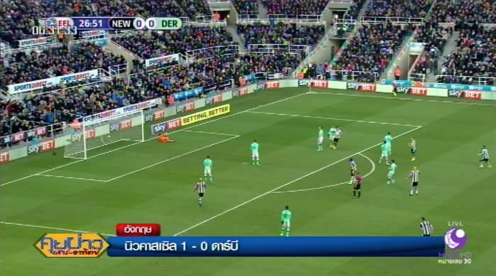 ฟุตบอลอีเอฟแอล แชมเปียนส์ชิพ อังกฤษ คู่ที่ MCOT FAMILY หมายเลข 14 ถ่ายทอดสด สาลิกาดง นิวคาสเซิล ยูไนเต็ด รองจ่าฝูง เปิดบ้านพบกับ ดาร์บี้ เคาท์ตี้ เกมนี้เจ้าถิ่น นิวคาสเซิล เฉือนเอาชนะไปได้ 1-0 โดยได้ประตูจาก แมทท์ ริทชีย์ ในนาทีที่ 28 นิวคาสเซิล เก็บเพิ่มเป็น 62 แต้ม จาก 29 นัด ขยับแซงไบรท์ตัน ขึ้นนำจ่าฝูง โดยนำ 2 คะแนน แต่แข่งมากกว่า 1 นัด ส่วนดาร์บี้ มี 46 แต้ม รั้งอันดับ 8