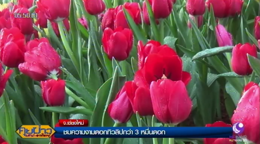 ไฮไลน์ของงานนี้คือ ดอกทิวลิป ทั้งสีแดง สีเหลือง สีชมพู และสีส้ม กว่า 30,000 ดอก กำลังบานอย่างสวยงาม ภายในส่วนจัดแสดง สวนสาธารณะหนองบวกหาด กลางเมืองเชียงใหม่ ซึ่งเป็นสถานที่จัดงานไม้ดอกไม้ประดับ ครั้งที่ 41