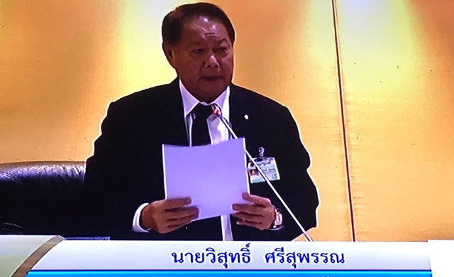 ขณะที่นายวิสุทธิ์ ศรีสุพรรณ รัฐมนตรีช่วยว่าการกระทรวงการคลัง ชี้แจงแทนนายกรัฐมนตรี ยืนยันว่ารัฐบาลให้ความสำคัญกับเรื่องดังกล่าว เพราะเรื่องของสินค้าผ่านแดนเป็นปัญหาสะสมมายาวนาน อีกทั้งผู้บริหารศุลกากรมีความตื่นตัวในการแก้ปัญหาเรื่องนี้ เพื่อให้การผ่านแดนเป็นไปตามเจตนารมณ์ และรัฐบาลได้แจ้งกรมศุลกากรให้ดำเนินการตามกฎหมายอย่างเข้มงวด โดยมาตรการควบคุมและแก้ไขปัญหาการหลีกเลี่ยงภาษีจะมีการบันทึกภาพสินค้าโดยละเอียด มีการทำรายงานการเข้า-ออกสินค้าเพื่อให้เจ้าหน้าที่ตรวจสอบ การจัดชุดเจ้าหน้าที่กรมศุลกากรทำงานร่วมกับหน่วยงานความมั่นคงอื่นในการตรวจสอบและป้องกันการลักลอบนำของออกจากคลังสินค้าก่อนถึงประเทศปลายทาง รวมทั้งยังออกมาตรการอนุญาตคลังสินค้าที่มีอยู่กว่า 20 คลังสินค้า ซึ่งเป็นที่พักสินค้าให้มีความเข้มงวดมากขึ้น ไม่อนุญาตให้ตั้งคลังสินค้าเพิ่ม และถ้าไม่ทำตามระเบียบ จะถอนใบอนุญาต และทำให้ระยะเวลาพักสินค้าให้สั้นลง