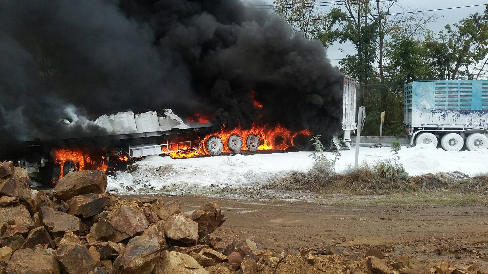 ส่วนบริเวณจุดเกิดเหตุเจ้าหน้าที่ต้องปิดการจราจรชั่วคราว เพื่อฉีดน้ำดับเพลิงรถบรรทุกทั้ง 2 คัน ล่าสุดเปิดเส้นทางได้ 1 ช่อง ให้รถเคลื่อนตัวได้ สำหรับสาเหตุทราบว่าขณะที่รถบรรทุกแป้งกำลังแล่นมาถึงบริเวณดังกล่าวเป็นทางลาดชันลงเขา เกิดปัญหาหม้อลมเบรก จึงพยายามหยุดรถ และรถได้ไหลไปชนกับคันอื่น.-สำนักข่าวไทย