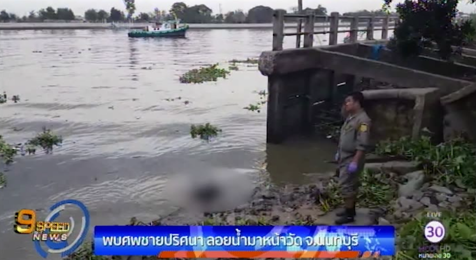 นนทบุรี 2 ก.พ.-เร่งสอบเหตุพบศพชายลอยน้ำเจ้าพระยาหน้าวัดเชิงเลน อ.ปากเกร็ด จ.นนทบุรี สภาพมีเชือกผูกที่มือ2ข้าง ตำรวจสันนิษฐานเบื้องต้นอาจถูกฆาตกรรม