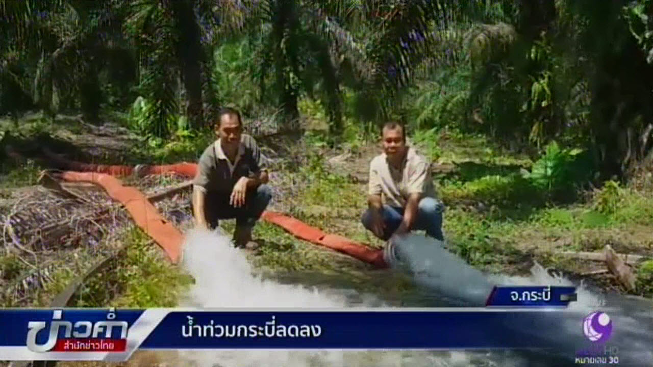 เจ้าหน้าที่ศูนย์ป้องกันและบรรเทาสาธารณภัย เขต 18 ภูเก็ต ระดมเครื่องสูบน้ำระยะไกล 3 เครื่อง สูบน้ำออกจากพื้นที่ ต.ดินแดง อ.ลำทับ จ.กระบี่ ติดต่อ กันเป็นวันที่ 5 ล่าสุดทำให้น้ำลดลงอย่างเห็นได้ชัดประมาณ 4 นิ้ว ชาวบ้านเริ่มมีความหวัง หลังเดือดร้อนมานานกว่า 1 เดือน บางครอบครัวยังไม่สามารถกลับเข้าไปอยู่ในบ้านตัวเองได้