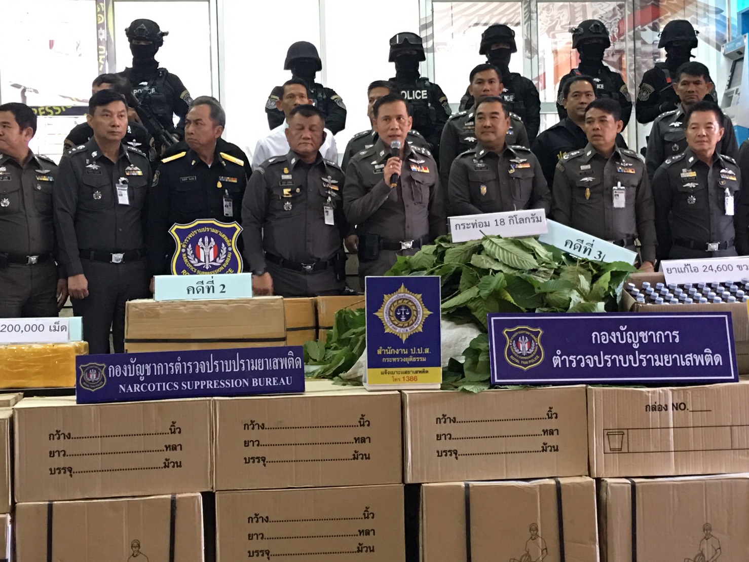 นอกจากนี้ ยังยึดใบกระท่อม 18 กิโลกรัม จากเครือข่ายยาเสพติดภาคใต้ ได้ที่บริเวณริมถนนสายเลียบคลองชลประทานสายท่าแค- บ้านทุ่งลาน อำเภอเมือง จังหวัดพัทลุง และยาแก้ไอรวม 184 กล่อง 24,600 ขวด มูลค่า 3 ล้านบาท ที่บรรจุไว้ในกล่อง เตรียมส่งไปรษณีย์ ที่บริษัทขนส่ง แห่งหนึ่งถนนเพชรเกษม อำเภอบางกล่ำ จังหวัดสงขลา สอบสวนทราบว่า ยาเสพติดดังกล่าว เตรียมส่งไป จำหน่ายในพื้นที่จังหวัดชายแดนใต้ ซึ่งยาแก้ไอนิยมนำไปเป็นส่วนผสมกับน้ำต้มพืชกระท่อม ทำเป็นยาเสพติดประเภท 4 × 100 ซึ่งกำลังเป็นที่นิยมและแพร่หลาย ซึ่งการจับกุมในครั้งนี้ สามารถอายัดทรัพย์ ได้มูลค่า กว่า 7 ล้านบาท.-สำนักข่าวไทย