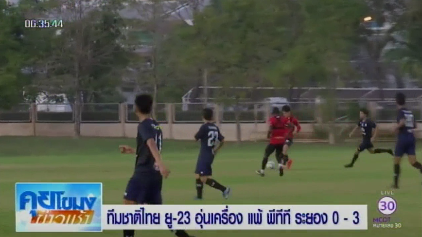 ฟุตบอลนัดอุ่นเครื่อง ทีมชาติไทย ชุดอายุไม่เกิน 23 ปี ที่เตรียมทีมสำหรับศึกชิงแชมป์เอเชีย ยู-23 รอบคัดเลือก และซีเกมส์ ที่มาเลเซีย พบกับ “พลังเพลิง” พีทีที ระยอง ทีมไทยลีก 2 ที่สนาม Housing IRPC จ.ระยอง เกมนี้ ช้างศึกจูเนียร์ ของกุนซือ วรวุธ ศรีมะฆะ จัดแนวรุก เจริญศักดิ์ วงษ์กรณ์ กับ ออสการ์ คาห์ล เล่นริมเส้น แล้วส่ง กิตติพงษ์ วงมา กับ สิทธิโชค กันหนู เป็นคู่กองหน้า ผลปรากฏว่า พีทีที ระยอง ไล่ยิงเอาชนะไป 3-0 ทั้ง 3 ประตูเกิดในครึ่งหลัง จาก เดนนิส มูริลโล นาทีที่ 50, อู กึน ยอง คนเดียว 2 ประตู ในนาทีที่ 82 กับ 86